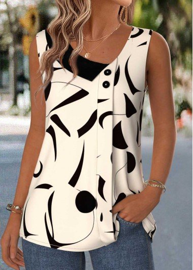 The beige geometric print is clean, modern, and incredibly versatile. The patchwork and print placement variation make each top feel unique, giving it a special, non-mass-produced feel.