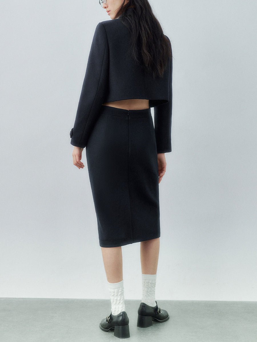 Fabric Shell: Face:91% Polyester 9% Wool Back:100% PolyesterLining:100% Polyester Thickness Medium Stretch Fabric Non-Stretch Tips : Washing at lower temperatures and using delicate spin cycles are gentler on garments, helping to preserve their color, shape, and structure. Do not bleach or use whitening agents. Do not tumble dry. SPU : UYU140043 Product Measurement Units: CM Size XS S M L XL Length 39 40 41 42 43 Shoulder Width 39 40 41 42 43 Bust 93 97 101 105 109 Sleeve Length 58 59 60 61 62