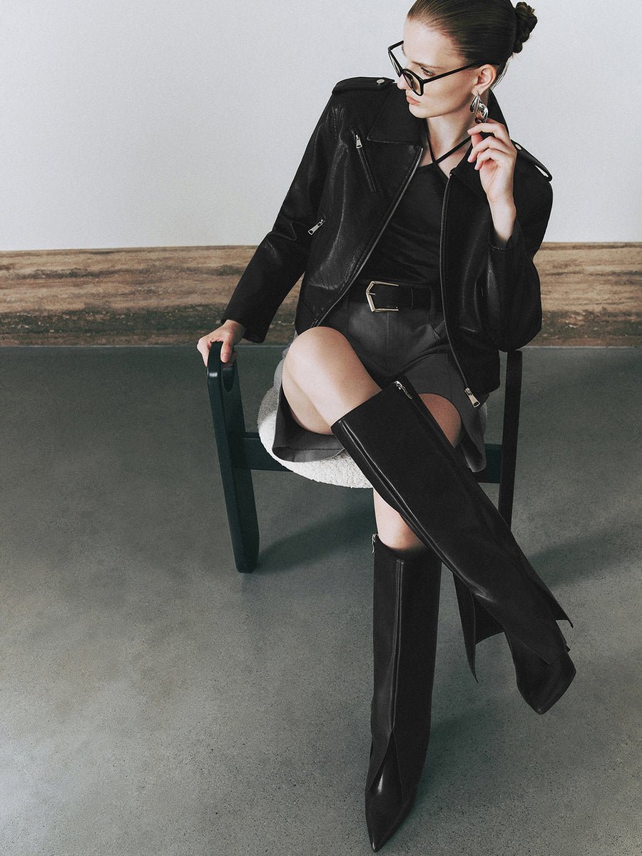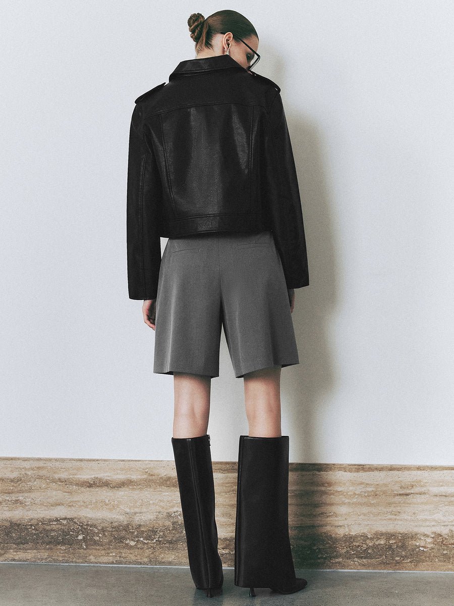 Fabric Shell: Coating:polyurethane Base fabric:100% ViscoseLining:100% Polyester Thickness Medium Stretch Fabric Non-Stretch Tips : Washing at lower temperatures and using delicate spin cycles are gentler on garments, helping to preserve their color, shape, and structure. Do not bleach or use whitening agents. Do not tumble dry. SPU : UWM140012 Product Measurement Units: CM Size XS S M L Length 47 48 49 50 Shoulder Width 41 42 44 46 Bust 94 99 104 109 Sleeve Length 57 58 59 60