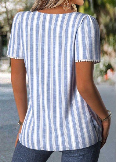 Elevate your style with the Blue Striped Pleated Short Sleeve Square Neck T-Shirt from Modlily. Featuring a chic square neckline and soft pleated details, this breathable t-shirt offers a flattering fit and timeless striped design. Perfect for casual outings or semi-formal occasions, it pairs effortlessly with jeans or skirts for a stylish and comfortable look. Add this versatile wardrobe essential to your collection today and enjoy a blend of elegance and comfort in one stunning piece.